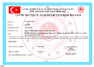 Çevre Bakanlığı Laboratuvar Yeterlilik Belgesini görüntülemek için tıklayınız; Y-34/380/2025